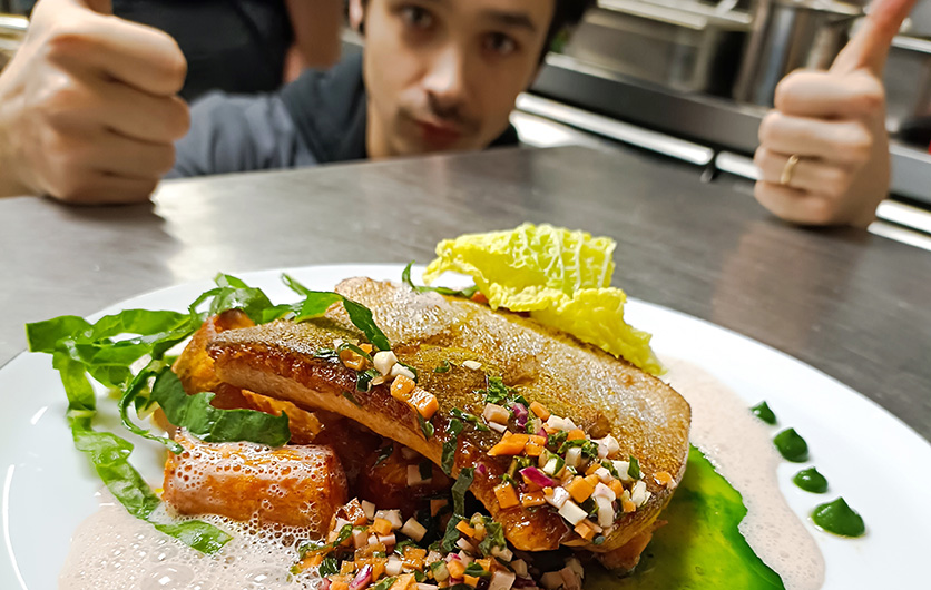 Vous ne trouverez pas de mangue, d’ananas, ni même de poisson de mer dans nos menus. Nos régions regorgent de produits de qualité pour composer (et varier très régulièrement) une carte bistronomique ! Nous sommes également fiers de pouvoir mettre en valeur des producteurs qui travaillent dans une démarche durable et environnementalement viable que nous soutenons. Le souci du bien-être animal est également au cœur du travail des éleveurs et éleveuses avec qui nous travaillons.